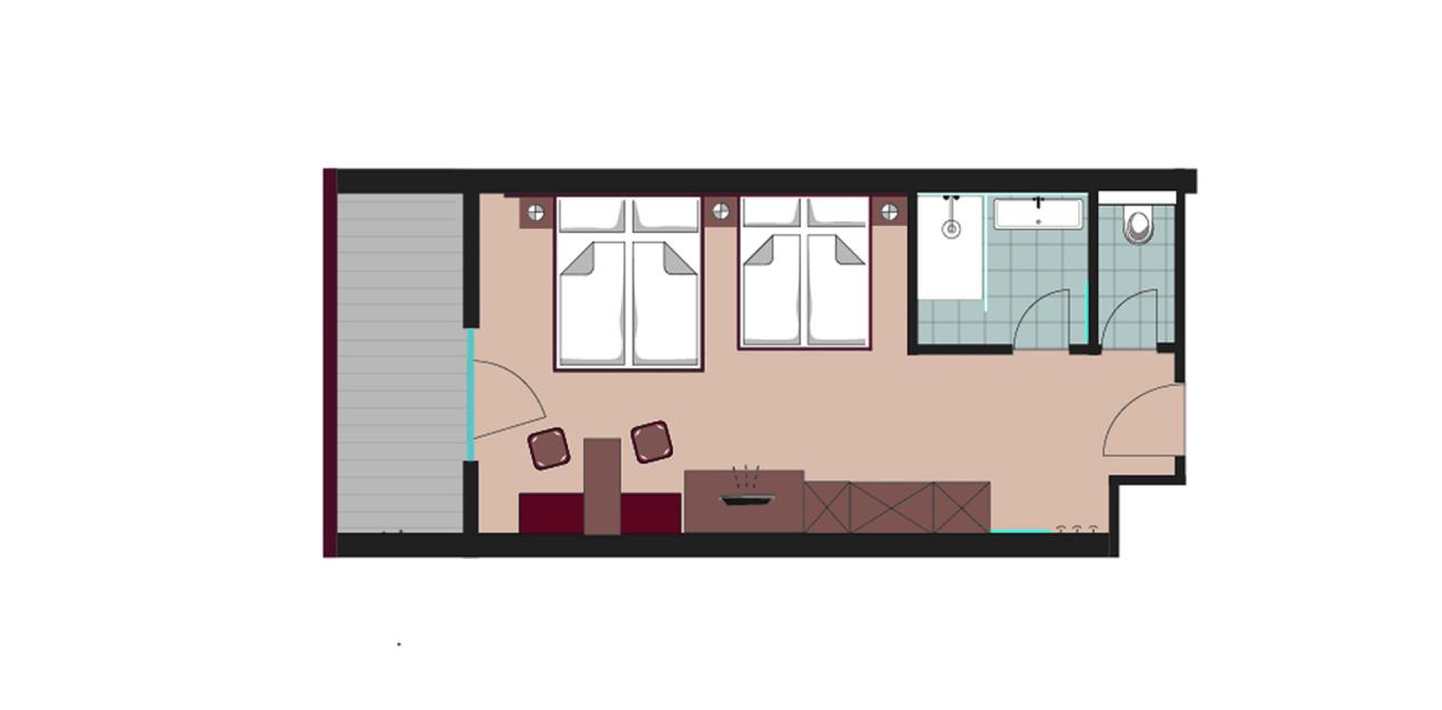 General amenities: 1 double bed, living corner, children double bed (160 x 180 cm), balcony, shower and toilet, hairdryer, cosmeticmirror, flatscreen TV, telephone, wifi