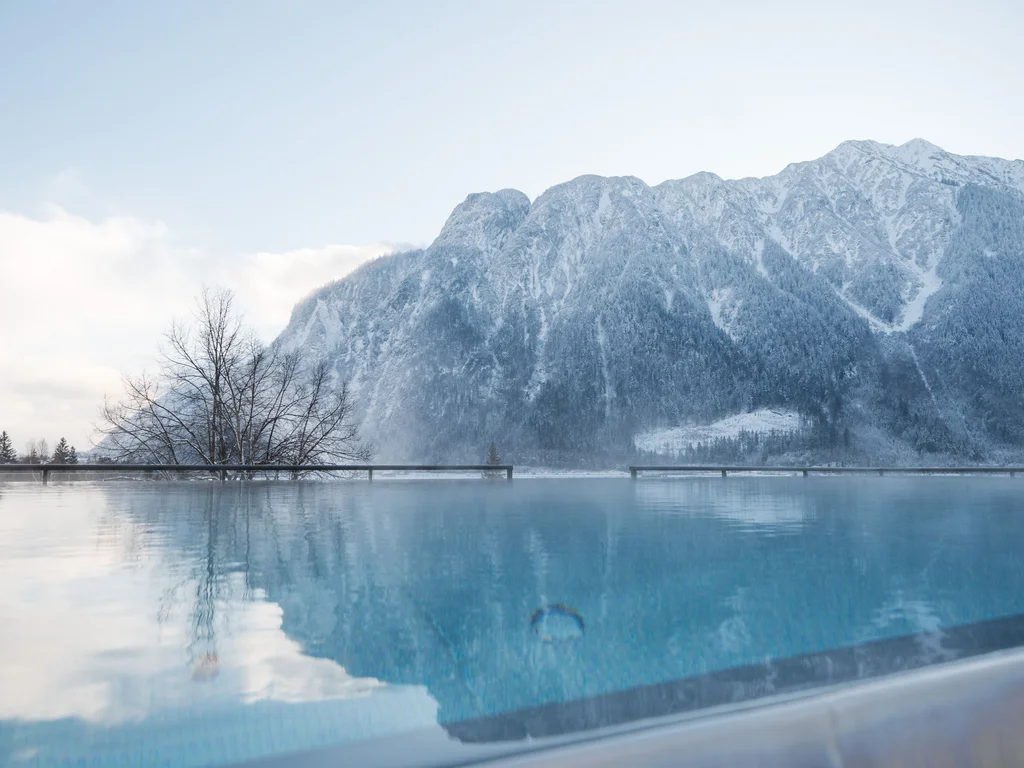 Swimming towards the sky: At this Tyrolean hotel with infinity pool, the boundaries between the pool, Lake Achensee, and the Tyrolean Alps seem to disappear. Right in the middle of it all: you and your kids. Dive in and feel like you’re swimming towards infinity.
