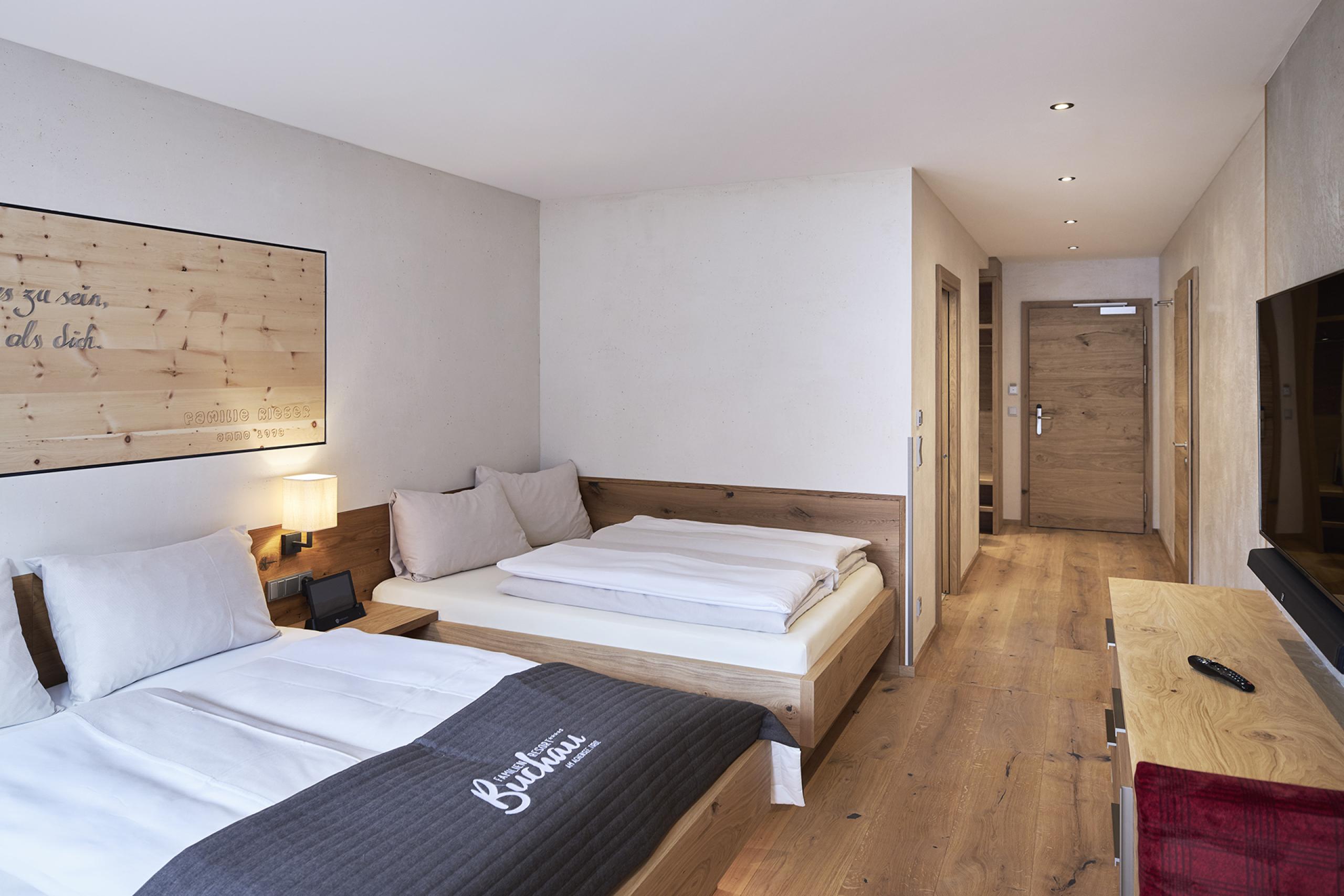 Allgemeine Ausstattung: 2 Doppelbetten (180 x 200 und 140 x 200), Sitzbank und Schreibtisch, Südbalkon mit Seeblick, Eichenholzboden, Kühlschrank, Dusche, Föhn, Kosmetikspiegel, WC, Telefon, W-Lan, Safe, Smart TV 55'' mit Netflix, Amazon TV und Sky mit Soundbar.