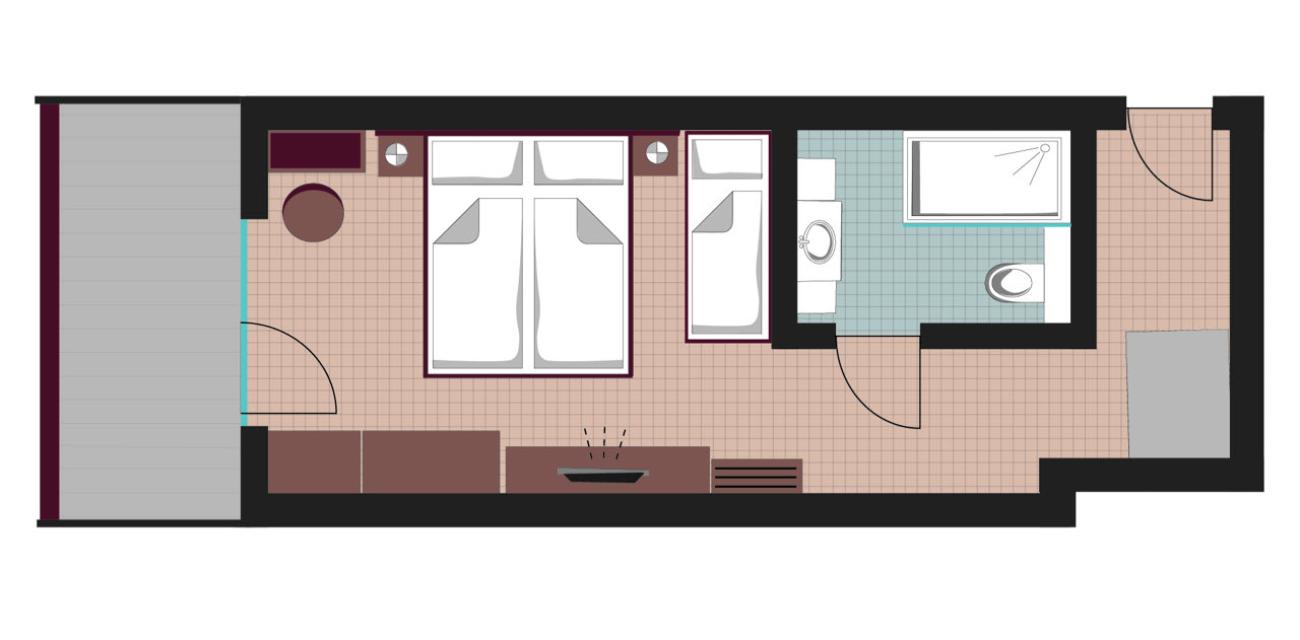 Allgemeine Ausstattung: Doppelbett (180x 200 cm), Einzelbett (90 x 200 cm), Sitzgelegenheit, Südbalkon mit Seeblick, Fliesenboden, Kühlschrank, Dusche, Föhn, Kosmetikspiegel, WC, W-Lan, Safe, Smart TV 55'' mit Netflix, Amazon TV und Sky mit Soundbar