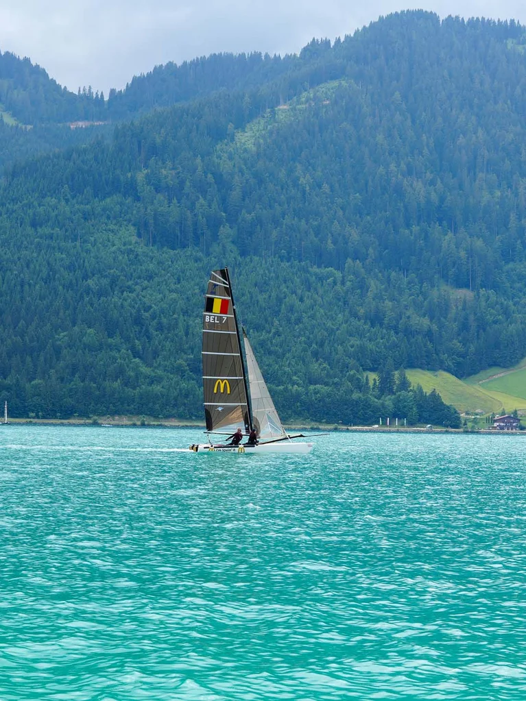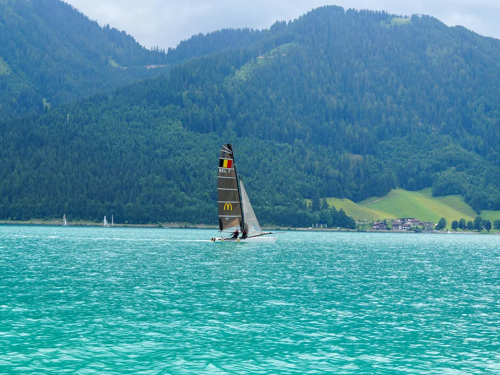 Türkisgrünes Wasser. Strahlender Sonnenschein. Perfekte Windbedingungen. Der Achensee ist der ideale Ort für alle, die den Wassersport lieben: Surfen, Stand-up-Paddling oder Segeln – beim Wassersport auf dem See in Österreich haben Sie so viele Möglichkeiten.